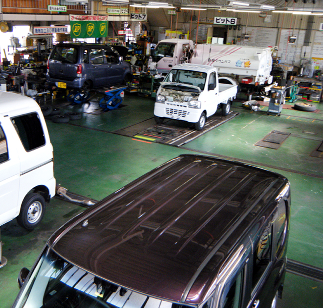 山崎自動車は運輸局長指定工場ですので、徹底した安全点検、法令に基づいた24ヶ月点検、分解整備等を実施しております。エンジンオイル交換等の軽整備からエンジン載せ替え等の重整備までお気軽にお問い合わせください。