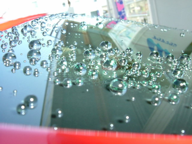 運転に大切なこと…それは安全な視界の確保です。油膜・水垢・ウロコなどを除去し撥水効果のあるイオン結合の強固な被膜を形成します。市販の撥水コートが劣化してくると起こりやすい夜間のギラツキや乱反射を防止。耐久性・持続性が良く長期間ご利用いただけるコーティングです。形成された鏡面状皮膜が表面張力による撥水をもたらします。