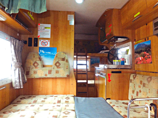 | 装備 | 冷蔵庫・WAC・テレビ・DVD・FFヒーター・トイレ・シャワー・洗濯機・ETC・ナビ・TV・外部充電・走行充電・サブバッテリー・お茶 |